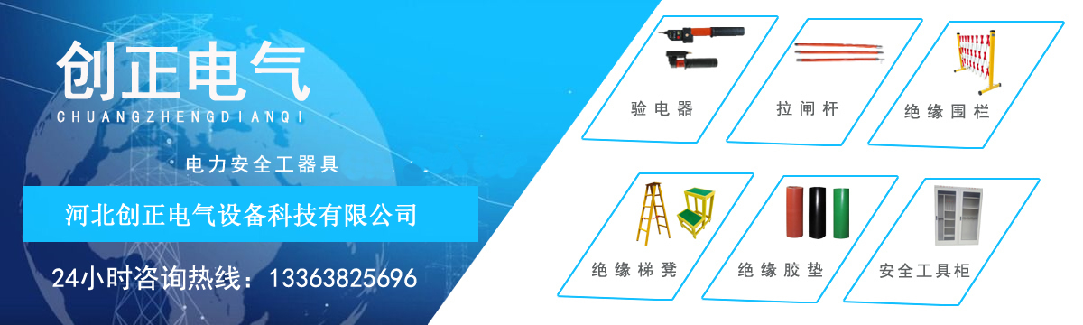 河北創(chuàng)正電氣設備科技有限公司主要經營產品包括:高壓驗電器、高壓接地線、高壓拉閘桿、絕緣橡膠墊、絕緣伸縮圍欄、絕緣梯、安全工具柜、絕緣凳、擋鼠板、安全警示帶、絕緣臺、安全帶、腳扣、安全帽、標識牌、絕緣手套、絕緣靴等電力安全工器具。公司以“服務電力系統(tǒng),努力永無止境”為目標,以“人才就是生產力”為戰(zhàn)略,以經驗為依托,以理念為指導,以員工為基礎,以市場為支撐,貫徹“以顧客需求為上”的經營理念,以合格的質量,合理的價位,適應市場的需求。